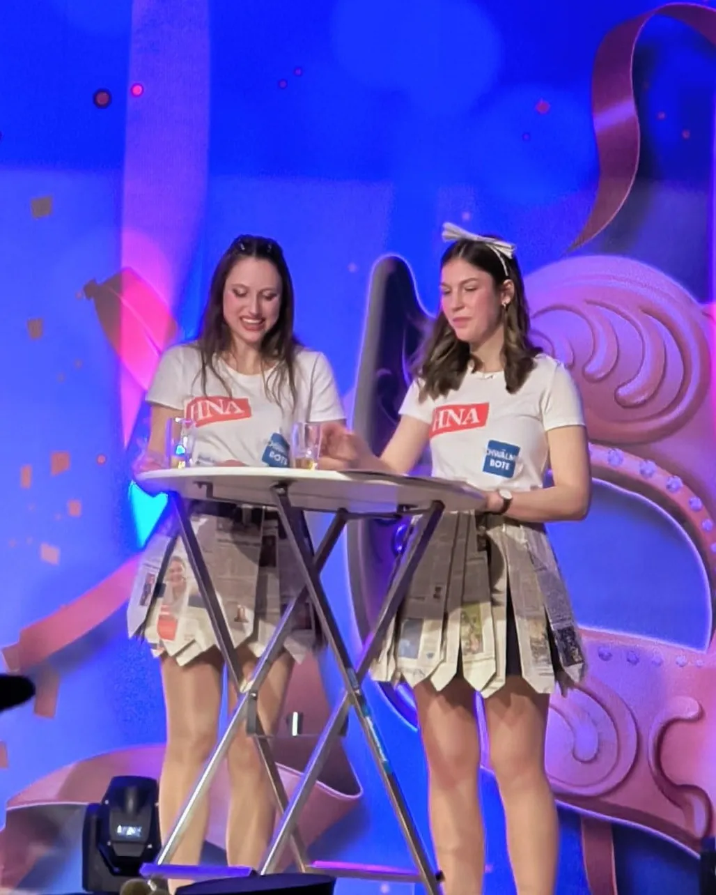 Mit den "aktuellsten" Dorfnachrichten, die immer mit Spannung erwartet werden, trugen Franziska Knauff und Alina Lange zur allgemeinen Erheiterung des Publikums im Saal bei. Foto Jäckel-Rosskopf